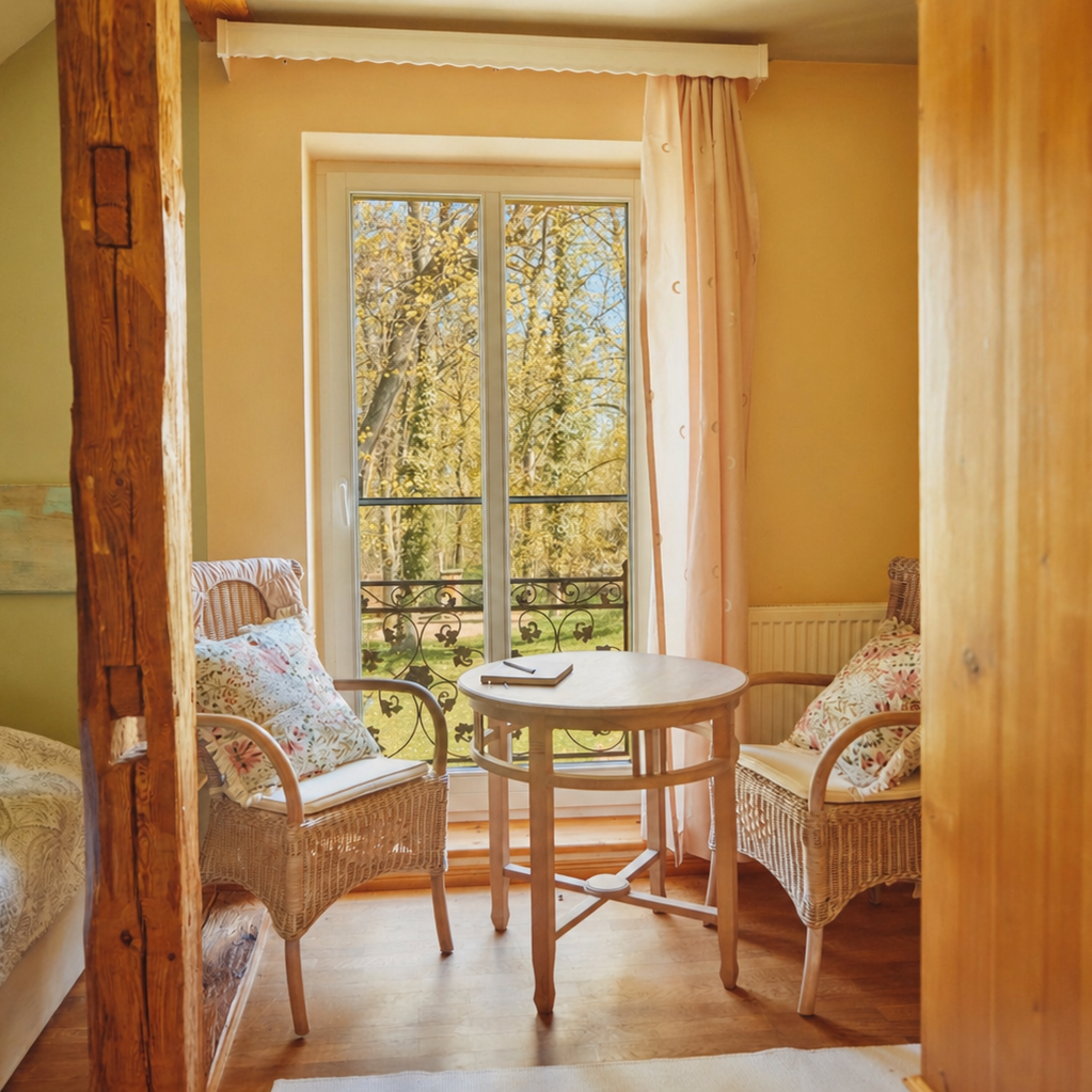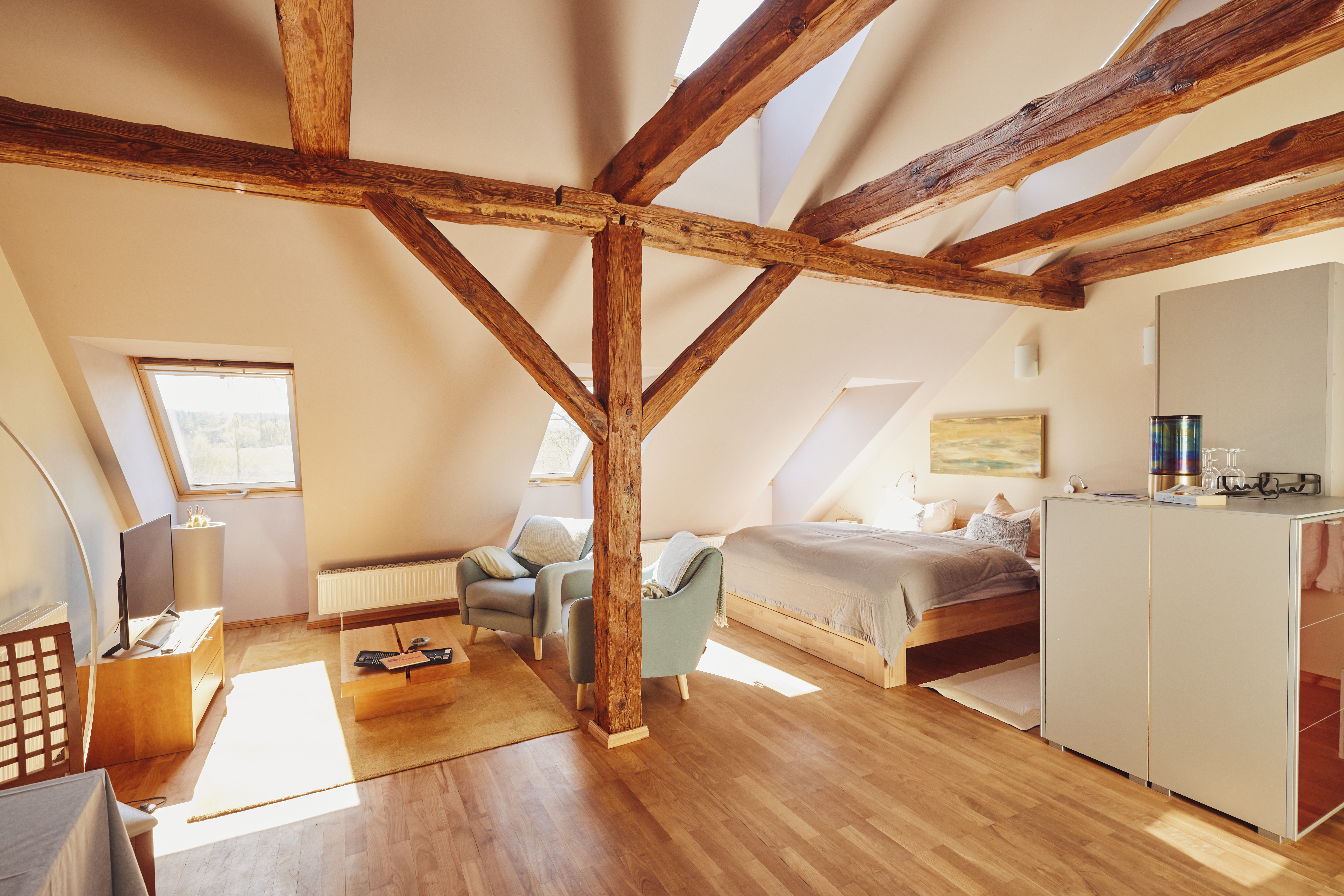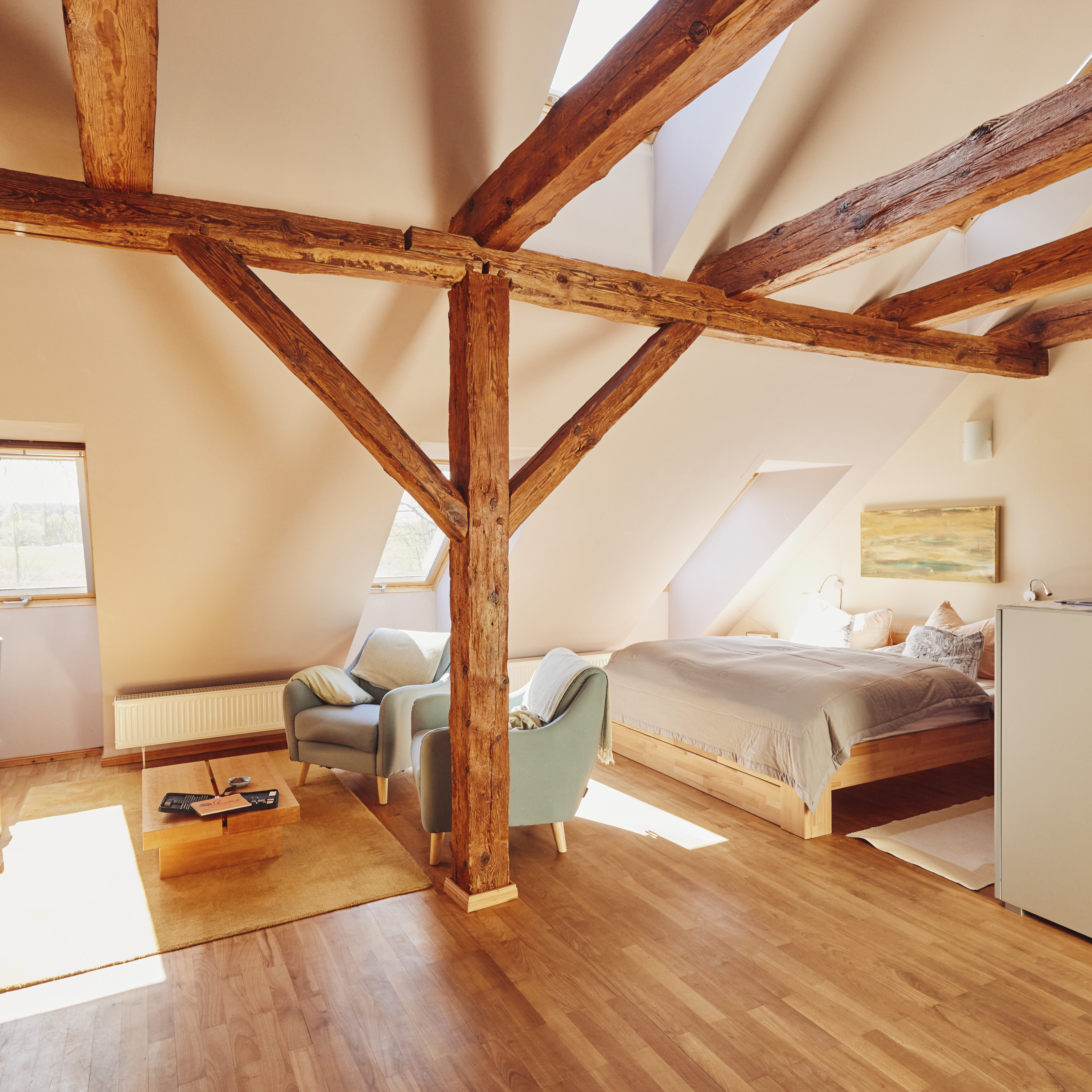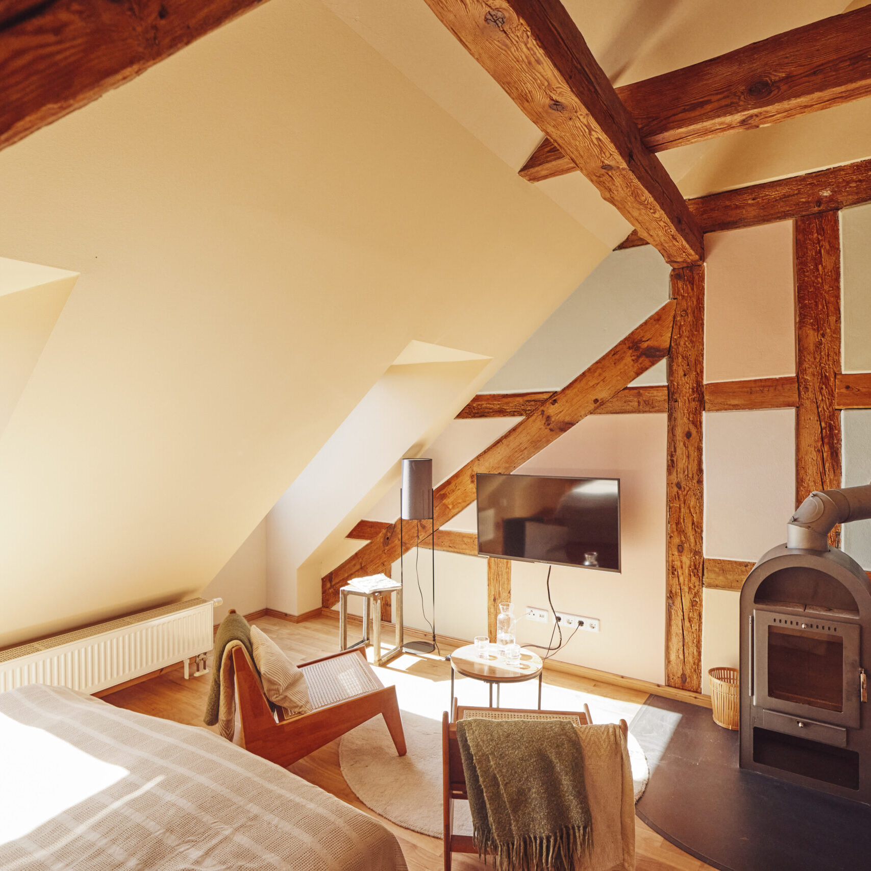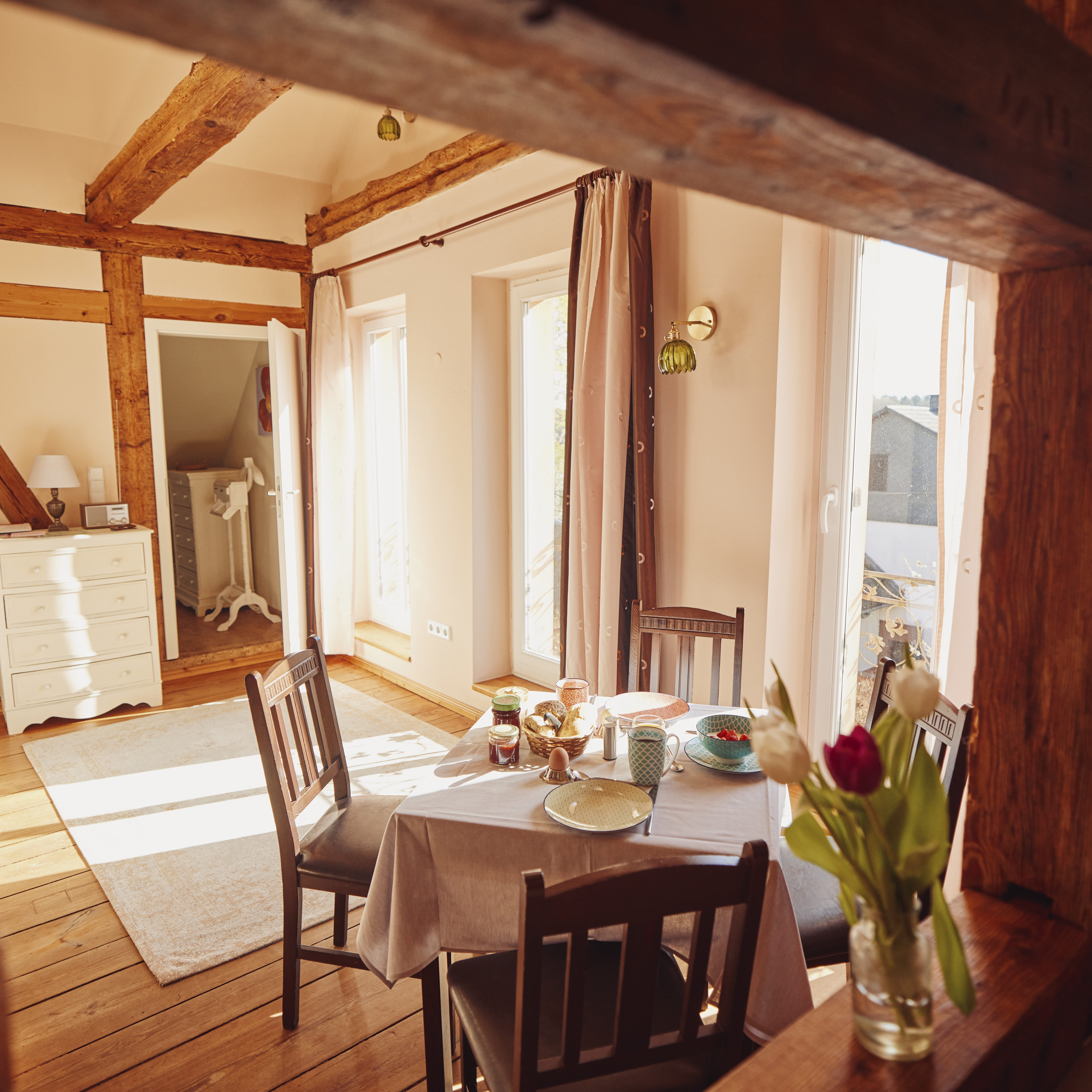 Seit 2004 hauchen wir dem ehemaligen gräflichen Forsthaus derer von Ahlimb neues Leben ein. Mit viel Liebe zum Detail haben wir sechs individuelle Ferienwohnungen geschaffen – jede ein Unikat. Ob charmante Maisonette oder lichtdurchflutetes Studio: Bei uns wohnen Sie stilvoll, nachhaltig und naturnah.
