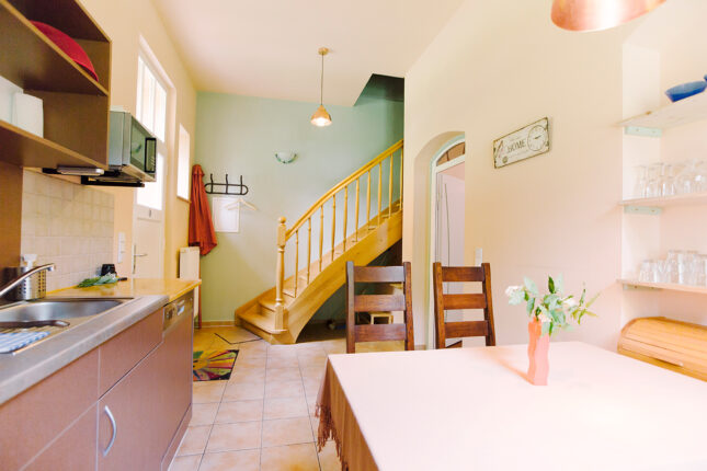 Im Erdgeschoß befindet sich die Küche mit dem Essplatz und der Wohnraum.